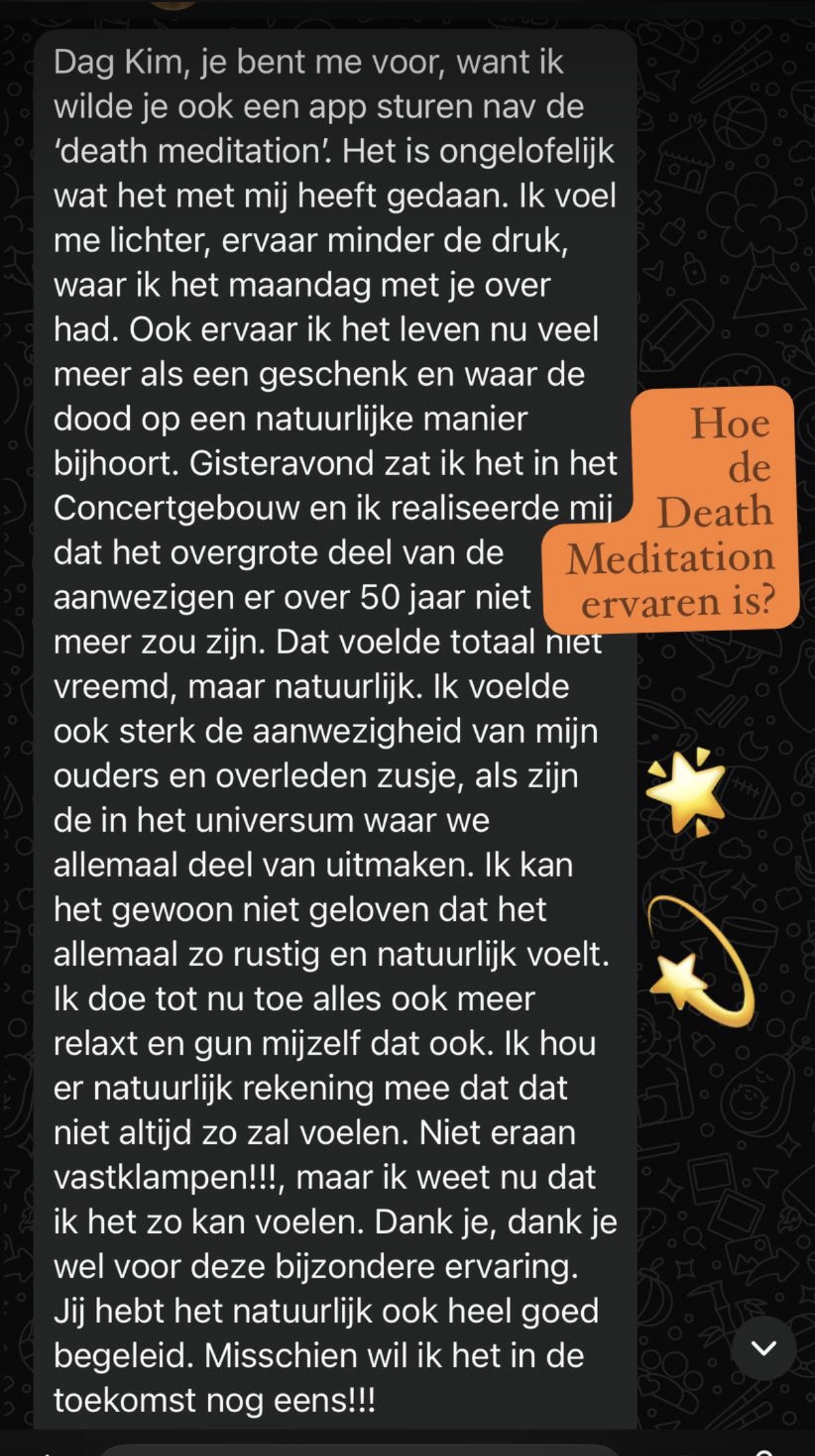 "Één van de meest bijzondere meditaties die ik ooit heb gedaan."
